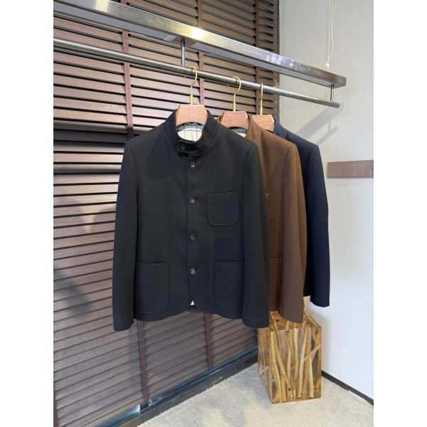 LP 25 신상 비즈니스 캐주얼 스탠드넥 점퍼 코트 차이나 칼라 디자인, 전통 공예, 고급스러움 울 + 아세트산 + 친환경 폴리에스테르 + 면혼방 원단으로 짜임무늬가 있고 절제되고 럭셔리하며 주름에 강하며 뻑뻑하지 않고 상체가 편안하며 비즈니스와 캐주얼을 겸비하여 스타일리쉬하고 멋스러움 브랜드 레터링 로고 단추로 고급스러움이 가득하고 높은 안감으로 고급스러움을 한 눈에 느낄 수 있음