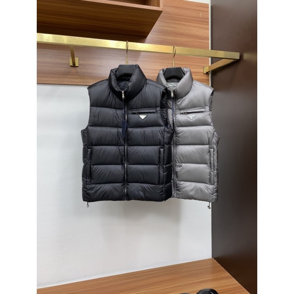 프라다 가을/겨울 신상 패딩 베스트 오리지널 1:1 맞춤 제작 철물 부품 전수입 오리지널 맞춤 절대적인 고품격 최고급 90 화이트 오리털 초부드러운 충전 볼륨 슈퍼 중공업 원단 가공 핏 완벽 주의 단독 비시장 상품