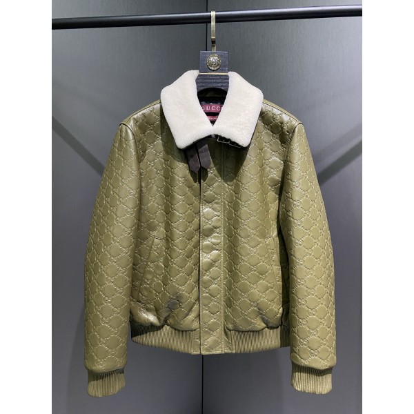 구찌 런웨이 신상 단독선발 가죽 재킷 겉감 선별 수입 양가죽 스웨이드 칼라 탈부착 가능 프릴넥 안감 타탄 면 몸판 전체 프레스 성형
