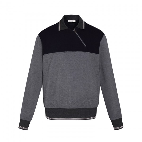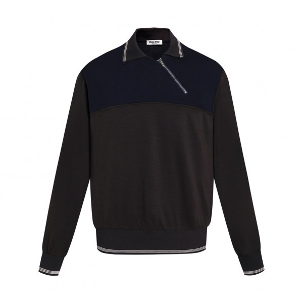 미우미우 긴팔 옆지퍼 폴로 셔츠 오리지널 25400 구매 개발 커스텀 실키 비스코스 폴리스판 후드 원단 420g 커스텀 편기 골지, 수입 자수 기계 사용 커스텀 1:1 지퍼 밴드 로고 레터링, 커스텀 1:1 로고