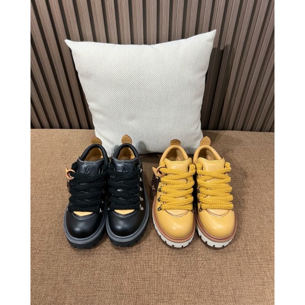 Lv X 니고 콜라보 리믹스 빈티지 등산화 앞판은 이태리 소가죽, 수고가죽, 양가죽으로 사용하였으며 가죽의 질감이 매우 좋음 안감은 수입 송아지 가죽 패치워크로 통기성이 좋음 독점 오픈 몰드 TR창으로 미끄럼과 내마모성 방지 밑창두께: 5cm