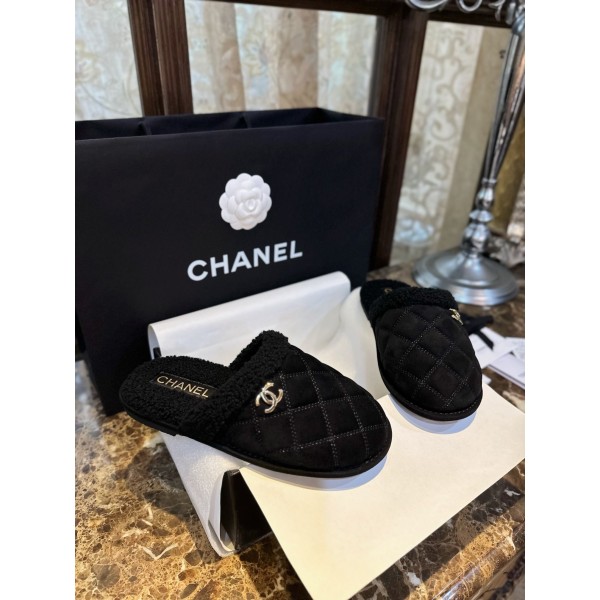 샤넬 23K 스웨이드 밍크 반 슬리퍼 블랙 램스울 블렌딩 램스울 + 생고무 콤비 밑창 퀼팅 + 클래식 더블 C 디자인 어디에 매치해도 무심한 스타일리쉬함