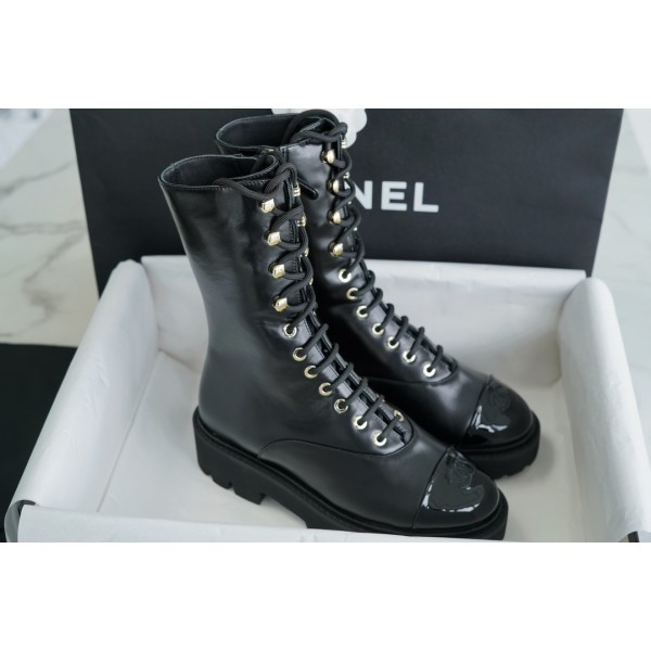 샤넬 23C 블랙 스트랩 워커 블랙 송아지 가죽으로 에나멜을 엮어 제작 플란넬 플랫폼으로 가볍고 신기 좋으며 내구성이 좋음 스트랩 디자인의 워커 부츠는 종아리 포용성이 높으며 다리 비율을 늘려주면서 완벽한 다리 보정
