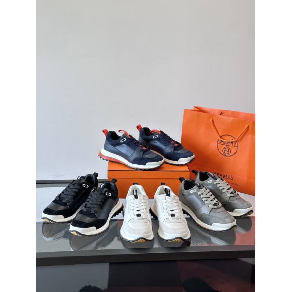 에르메스 스니커즈 송아지 가죽과 스웨이드로 제작 수입 소재로 질감이 풍부하고 가벼운 밑창 장식의 컬러 패턴으로 스타일리쉬한 룩을 완성함