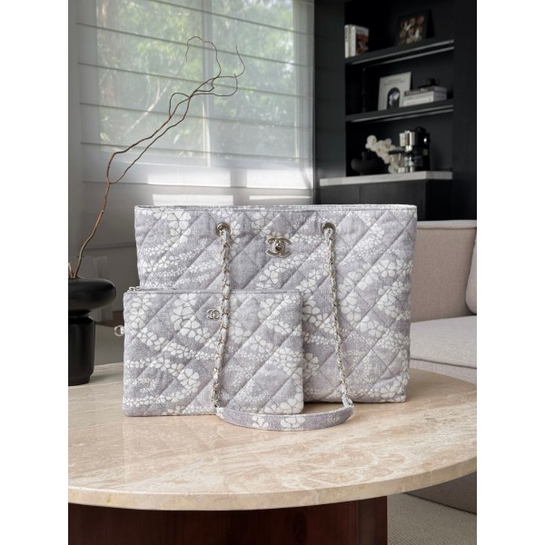 샤넬 25m 코코비치 쇼퍼백 그레이 바캉스룩을 주력으로 하고 있고 나른하고 편안함 작은 물건을 넣기에 편리한 내부 주머니가 있음 사이즈: 28*36.5*12.5cm