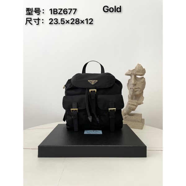 프라다 리나일론 스몰 사이즈 백팩, 골드 메탈 재생 나일론 원단, 금속 삼각형 로고 포인트 바디 전면 모던한 스타일, 플랩 기술, 전면 2개의 포켓 가볍고 실용적이며 조절 가능한 스트랩 디자인 전체적으로 가볍고 내부 공간이 넉넉하여 평상시 장거리 쇼핑은 물론 스포츠 장비까지 장착할 수 있음 워터프루프 방범 비주얼, 필수 아이템 모델번호: 1BZ677 사이즈: 12×23.5×28cm