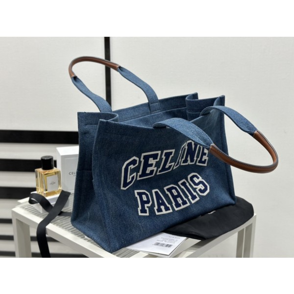 셀린느 데님 카바스 토트백 소가죽 트리밍 데님 라이닝 토트 숄더백 사계절 모두 심플한 스타일 힙하고 실용적이고 예뻐요 size: 41x28x17.5cm 모델번호: 196762