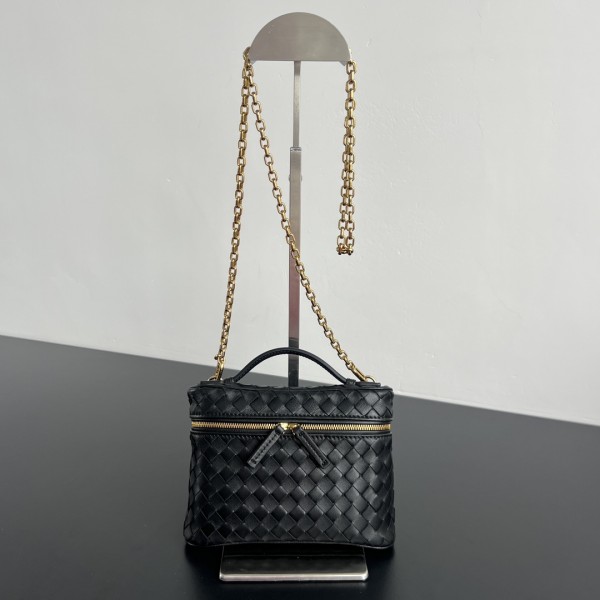 BV 스몰 Soft Vanity 체인 파우치 모델번호 843800 0.75mm 양가죽으로 짜여져 있음 클래식 입체형 실루엣과 소프트한 실루엣으로 스타일리쉬함과 실용성을 겸비함 체인 스트랩 탈부착, 크로스/핸드백 모두 가능한 스타일링 사이즈: 19x14x3cm