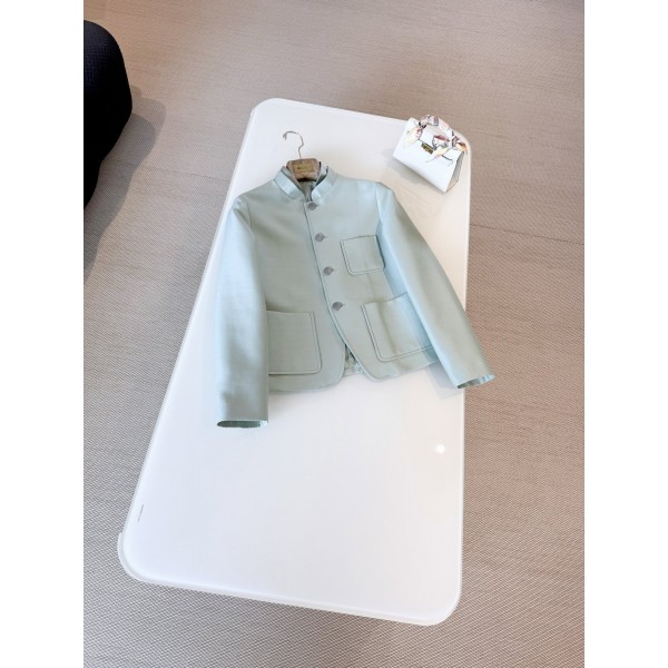 Loro Piana 25S 마린 민트 실크 울 세로줄 정장 코트 테일러드 YB 헤비 실크 재킷 컷팅으로 하이웨스트만의 유니크한 컬러로 부드럽고 몽환적인 블루의 상징인 깊고 잔잔한 느낌에 여성스러움과 산뜻한 느낌의 입체 포켓과 단추 장식이 어우러져 색다른 매력을 선사함