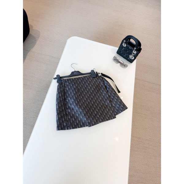 DIOR 25S 올오버 다크그레이 하이웨스트 치마바지 클래식한 오블리크 프린트로 그레이 컬러의 타플린 테크니컬 원단으로 정교하게 제작 실용적인 스타일의 CD 벨트 버클이 격식을 높여 허리라인을 돋보이게 함
