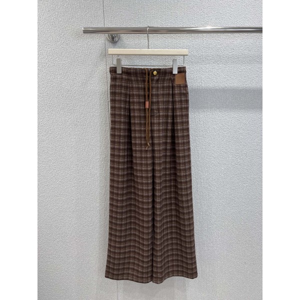 LOEWE 25 신상 체크 스트링 캐주얼 와이드 팬츠 체크 컬러를 활용한 허리 스트링 포인트 유니크한 디자인 포켓의 시그니처 가죽 레터링 로고 다리라인을 보정해주면서 하이 스트리트 스타일리쉬한 룩을 완성 사계절 코디용 팬츠, 바캉스 데이트 데일리