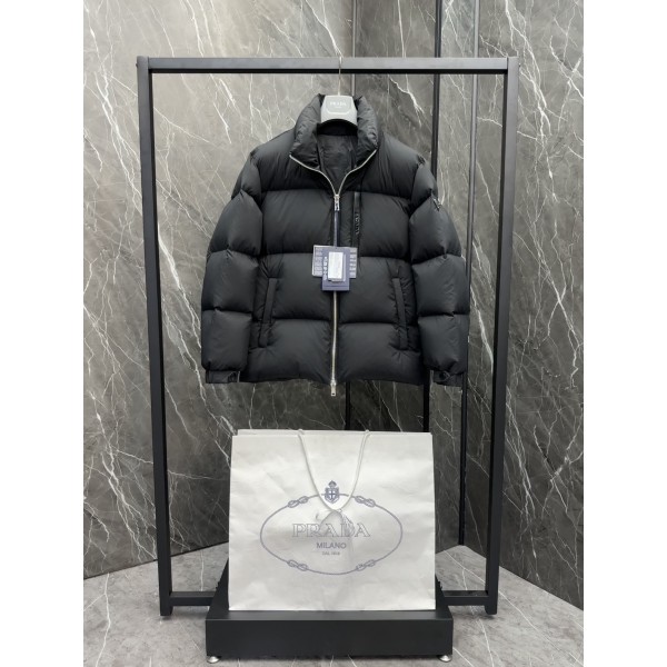 프라다 초경량 패딩 점퍼 엄청나게 꽉 채워진 제품 프리미엄 구스 다운 패딩 오리지널 하드웨어 오버사이즈 핏, 스트레이트 슬리브 소매단추 스냅 조절 가능, 지퍼 여밈 몰딩백. 스트레이트 커프스 사이드 에나멜 삼각형 금속 로고 코팅