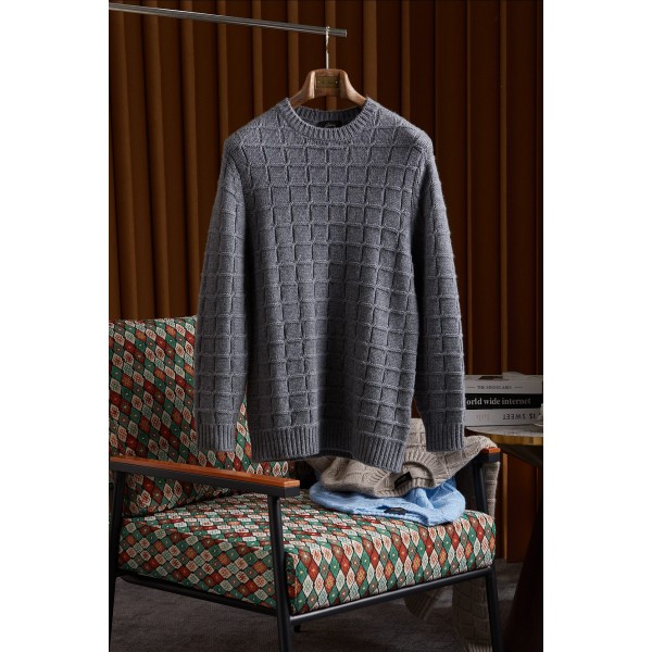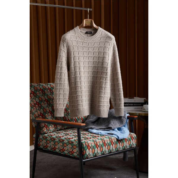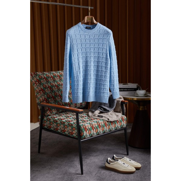 브리오니 캐시미어 울 풀오버 스웨터 최고급 캐시미어 65% + 양모 35%를 엄선하여 실키한 촉감으로 피부에 부드럽게 밀착되어 마치 두 번째 피부처럼 자유롭고 편안함 심플하면서도 격식을 잃지 않아 집이나 외출 시에도 항상 우아함과 여유를 유지할 수 있음 스웨터의 짜임새는 한 땀 한 땀 장인의 세심함과 섬세함을 드러냄 바둑판 체크무늬 요소는 클래식하면서도 모던하여 전체적으로 복고적인 매력을 더함