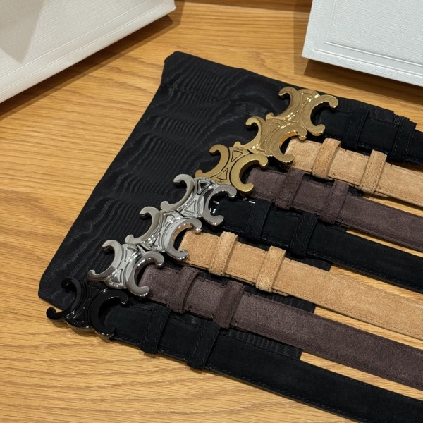 셀린느 TRIOMPHE 미들 벨트 스웨이드 소가죽으로 밑단 소가죽에 골드 메탈로 탈부착 불가 TRIOMPHE 버클 너비: 25mm