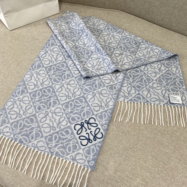 로에베 울 캐시미어 아나그램 머플러 미세먼지 블루, 고정플리스 칫솔자수 로고 양면 울과 캐시미어 머플러 포인트 투톤 체크 아나그램 티 플라워 패턴 트윌 바둑판 체크에 엠보싱 로고 촉감이 부드럽고 포근한 것이 가을과 겨울 꼭 필요한 아이템 소재: 울90% 캐시미어10% size: 38×180cm