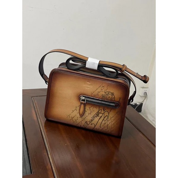 BERLUTI Journalier Scrito 레더 메신저백 베네지아의 부드럽고 내구성이 좋은 변색 가죽 스크리토 클래식한 트윌, 면/린넨 안감 실용적인 기능, 넉넉한 공간 외부 특징: 앞지퍼 플랫포켓 뒤 플랫포켓 내부 특징: 플랫 포켓 1개 손잡이가 달린 크로스 스트랩 Size : 높이 18.5cm-가로 25cm-두께 6.5cm