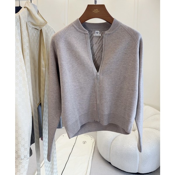 Hermes 2025 가을 겨울의 새로운 양면 자카드 니트 재킷 실용적인 양면 디자인으로 절제되고 연한 커피 베이스를 기본으로 전면적인 자카드 공법이 매우 인식 가능한 질감을 만들어냄 각각의 바늘에는 프렌치 럭셔리의 정교한 톤이 숨겨져 있음 클래식하고 깔끔한 디자인으로 지퍼 여밈이 자유로우며 정장바지와 매치하여 고급스럽고 신사적인 스타일을 연출하거나 청바지와 매치하여 캐주얼하고 럭셔리한 느낌을 연출가능 울 혼방으로 부드럽고 친근하며, 따뜻하고 포근한 느낌