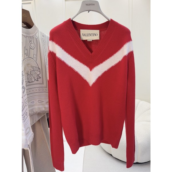 Valentino 2025 가을과 겨울의 새로운 레드 V 로고 스웨터 클래식한 V넥 + 컬러의 V자 스트라이프 울 100%로 부드럽고 따뜻하며 일상 출퇴근이나 캐주얼에도 쉽게 스타일링할 수 있음 레드 페스티벌 분위기가 짙으며 빈티지하면서도 활력이 넘침