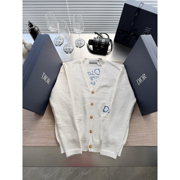 Dior 2025 FW 레터링 자카드 니트 가디건 ZP 17500 구매 분해 제작 면 니트 원단 맞춤, 전판 이태리 수입 컴퓨터 가로기 제작 전판 및 후판 장식 Dior 컬러 레터링 자카드 맞춤 로고 시보리 소매 밑단 맞춤, 초밀도로 부분 짜임 진정한 1:1 copy