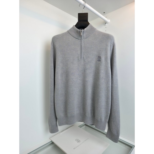 BC 클래식한 반집업 캐시미어 스웨터 방풍 보온, 가슴 로고 자수 절제되고 럭셔리하며 따뜻하고 편안한 비즈니스 통근 이너로 포인트 핏이 있는 컷팅, 캐시미어 울 혼방 소재로 적당히 따뜻하면서도 힘 있는 핏을 자랑함