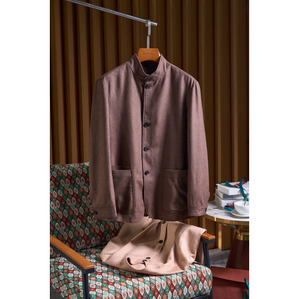제냐 오아시 스탠딩 칼라 비지니스 재킷 클래식한 핏에 매끄러운 컷팅과 박시한 핏 활동성에도 구애받지 않고 스타일리시하게 연출됨 원단이 이 싱글 코트 포인트 독특한 광택 질감을 가지고 있으며 촉감이 부드럽고 섬세하여 마치 구름과 같으며 회복력이 좋고 항상 견고하고 모양을 유지함 포켓의 가장자리는 정교한 가죽으로 테두리를 감아 매끈하고 보풀 한 점 없이 마무리되어 고품격 제작이 가능함 포켓의 위치와 사이즈는 세심하게 디자인되어 있어 아우터의 전체적인 비율과 잘 맞아 편안하고 자연스럽게 착용가능