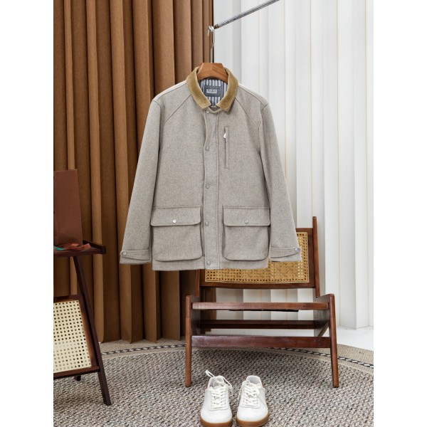 BC 코듀로이 패치넥 울 캐시미어 하프자켓 클래식함과 모던함이 어우러진 독특한 패션 감각을 자랑함 네크라인과 안감은 따뜻한 베이지 컬러의 코듀로이 소재를 사용 어두운 컬러의 패치 원단과 대비되어 시각적인 층위를 더해줌 엄선된 지퍼는 고품질의 메탈 소재를 사용 지퍼 헤드에 세련된 로고 조각이 있어 디테일이 퀄리티를 자랑함 울 80%, 캐시미어 20% 혼방 소재가 최적화된 원단 촉감이 부드럽고 보온성이 뛰어남 안감은 100% 큐브라 섬유를 사용하여 매끄럽고 편안하며 몸에 착화 시 자극이 없음 작업 측면에서 바느질은 균일하고 치밀하며 세부 처리가 정교하여 높은 기술 수준을 보여줌
