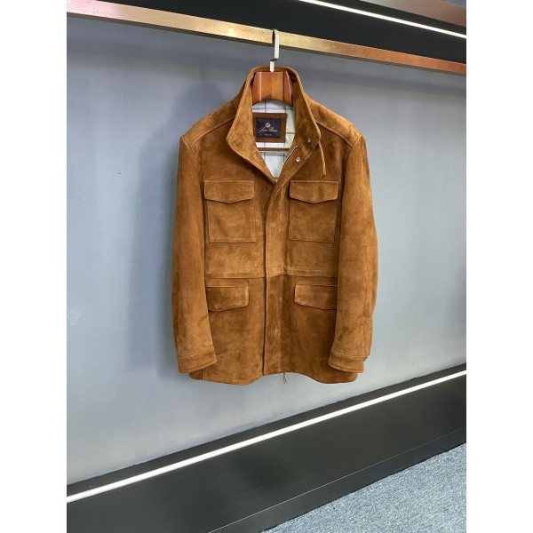 LP 2025 가을/겨울 남성 양가죽 스웨이드 재킷 코트 뉴질랜드에서 수입된 갈색 반융 양가죽을 엄선하여 정성스럽게 제작 가죽은 섬세하고 유연하며 촉감은 부드럽고 풍부함 핏에 클래식한 미디엄 사파리 디자인을 채택하여 허리 및 엉덩이를 적당히 덮는 길이감으로 가을 및 겨울 보온 수요를 충족시킬 뿐만 아니라 신체 비율을 수정하여 깔끔하고 당당한 모습을 연출할 수 있음 안쪽에는 허리끈이 숨겨져 있어 몸매에 따라 유연하게 조절이 가능 방풍 버클을 매치하여 가을 겨울의 찬바람을 효과적으로 견딜 수 있으며 실용성을 보장하는 동시에 금속 질감으로 옷에 포인트를 주어 절제되면서도 정교함이 드러남
