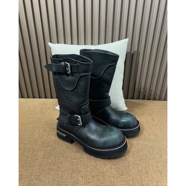 발렌시아가 가을/겨울 최신형 베놈 통굽 라이더 부츠 전체적으로 구제 가죽에 메탈 스트랩을 매치하여 하드하면서도 위트 있는 스타일로 개성있는 멋스러움이 가득함 겉감: 무광 내추럴 스크래치 송아지 가죽 (구제 데미지 처리) 안감: 커스텀 중광 소가죽 철물: 순동 무광 실버 스트랩 구제 밑창: 3단 소재 콤비 밑창 (리얼 가죽 테두리)
