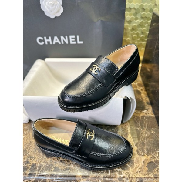 샤넬 25C 골드 스퀘어 더블 C로퍼 특수 결의 주름 흑소가죽+물나염 양가죽 안감 골드 스퀘어 더블 C 도금 로고 클래식하면서도 시선을 사로잡는 심플하고 대범한 분위기
