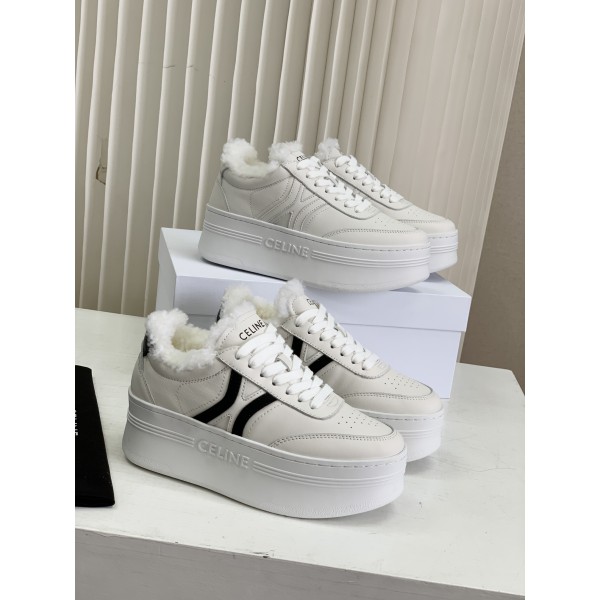 셀린느 최상급, 홈페이지 동시 판매 2025 겨울신상 패션 통굽 울 스니커즈 겉감 수입 송아지 가죽 안감 깔창 램스울 부드럽고 볼륨감 있으며 발은 비대하지 않고 고무 몰드 쿠션창 바닥 두께 6cm
