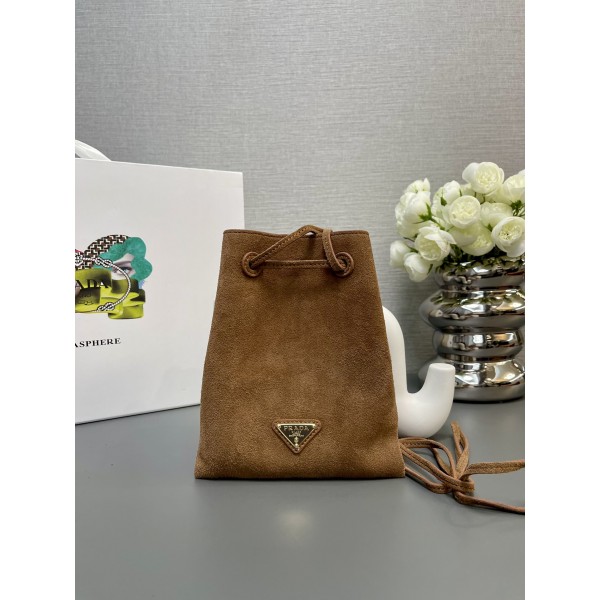 프라다 소프트 플랩 미니백 모델번호 1BH221 수입 스웨이드와 수입 양가죽, 최고급 메탈 주머니 입구는 스트링 포켓, 더블 스트랩 롱 숄더 스트랩 디자인 세련되고 캐쥬얼해 보이는 작은 크로스백 용량 공간이 넓은 귀여운 핫 아이템 사이즈: 17x20cm