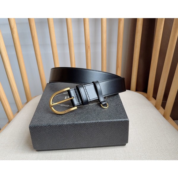 구매대행급 PRADA 최신형 여성 벨트 모던하고 세련된 핸드메이드 디테일이 돋보이는 벨트 가죽 소재 메탈 버클의 매끄러운 곡선을 포인트로 사용하여 세련된 질감의 폭을 표현하였음 폭: 3.5cm