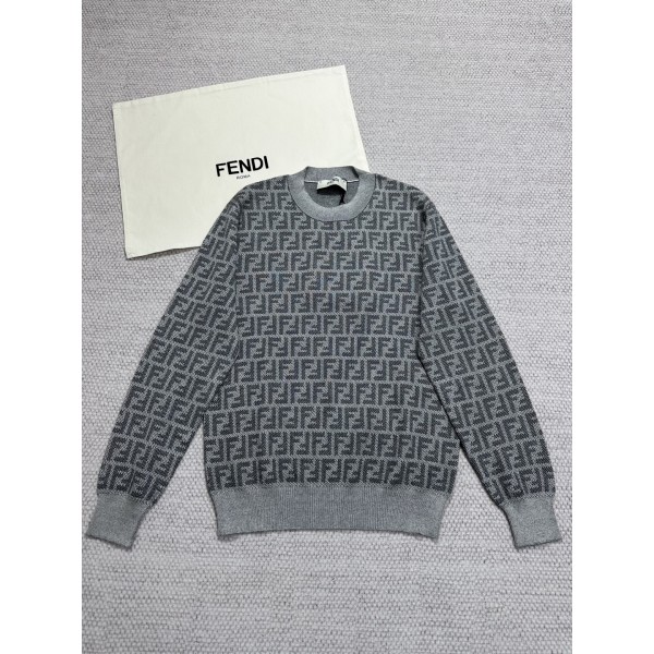 FENDI 그레이 자카르 니트, ZP11700 일본 사마기는 18핀 자카드 직조 24핀 스티치, 양모 + 실크 순양모보다 더 편안하고 광택이 좋으며 관리가 용이함 작은 라운드 네크라인 디자인에 더블 F 쟈가드 클래식하면서도 세련되고 심플함