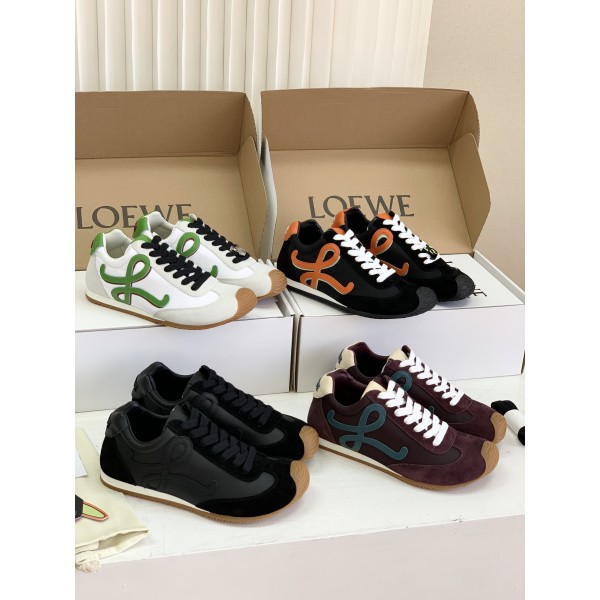 로에베 최고급, 공식 홈페이지 동기 2026 새봄 신상 발레풍 커플형 Ballet Runner2.0 운동화 겉감 맞춤 수입 톱 소가죽+스티치 나일론+스웨이드 안감 깔개 수입 부드러운 양가죽 EVA 몰드 투톤 콤비 고무창으로 미끄럼 방지 및 내마모성