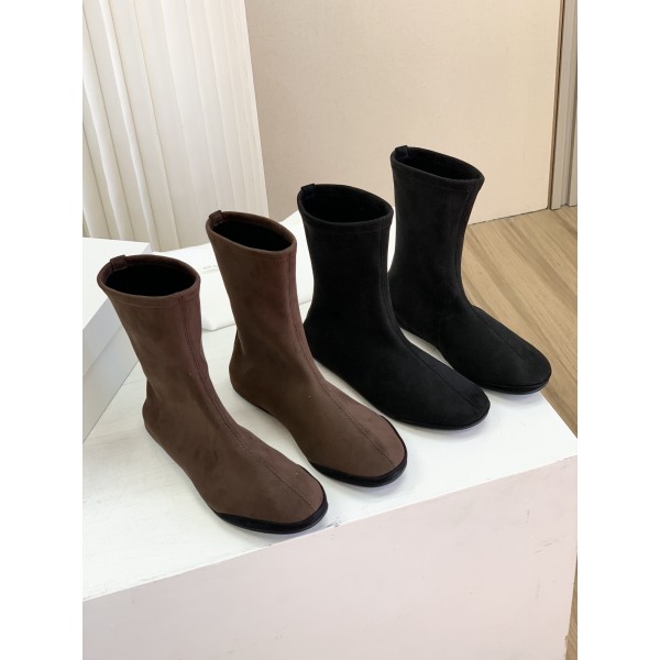 The Row 완산품 최상급, 홈페이지 동시 2025 겨울 핫 아이템 빈티지 플랫 스판 기모 슬림 부츠 겉면은 부드러운 신축성 캐시미어, 구름 한 겹을 감싸는 듯한 느낌 속은 발바닥을 깔아 보온성이 있어 부드럽고 섬세하며 맨발로 신어도 따뜻함 고무 몰드 심플한 바닥, 매트한 질감으로 가벼움 통 높이는 20cm