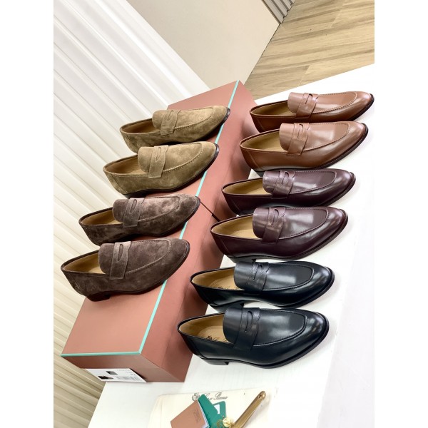 로로피아나, 순정부품, 홈페이지 동시 2025 매장 윈도 디자인, 남성 비즈니스 캐주얼 로퍼 Adler의 앞면은 이중 스티치로 마감되었으며 이음새는 미묘한 엠보싱 패턴으로 세련되고 벨벳처럼 부드럽고 실키한 소가죽으로 편안한 착용감을 선사하여 70년대의 세련된 매력을 편안히 표현해 주며 본염 송아지 가죽 안감과 깔창을 매치하여 색이 바래지 않고 발이 답답하지 않게 밀착되는 한 쌍의 호흡이 가능한 구두 이태리 수입 가죽 밑창