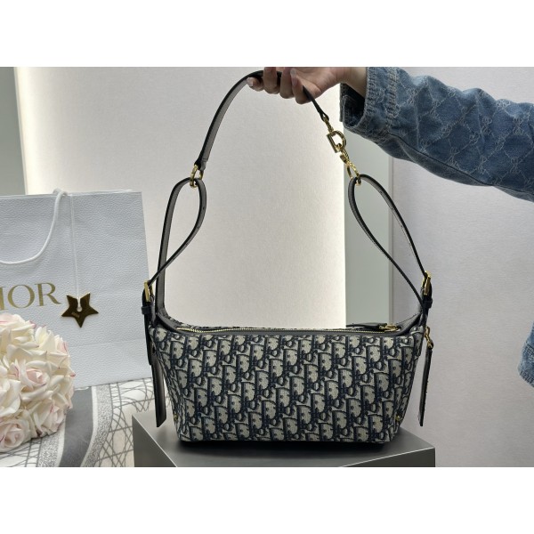 디올 D-Journey 백 스몰 수입 고밀도 자수, 클래식블루 + 골드레터링 숄더밴드 D버클 빈티지하고 고급스러운 초승달 가방형 토트, 숄더, 크로스, 다양한 업스타일 size: 25.5x14.5x14cm