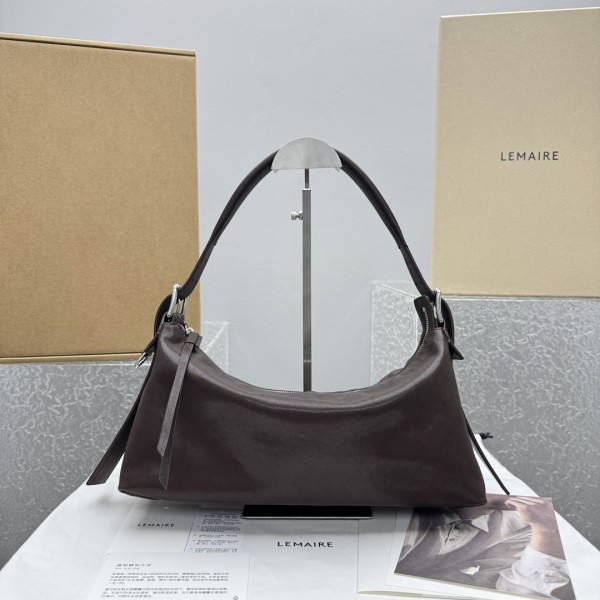 르메르 Belted Baguette 숄더백 클래식한 레인보우 실루엣에서 영감을 받은 더 작은 사이즈의 가방 안감 없는 사이드 디자인으로 가볍고 유연한 실루엣을 유지하며 바닥은 안감 보강을 통해 안정적인 구조를 제공함 실용성과 트렌디함을 겸비한 디자인 사이즈 : 바닥길이 35x높이 18x폭 14cm