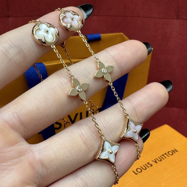 루이비통 COLOR BLOSSOM BB 컬렉션 패모 팔찌 핑크골드 큐빅 모노그램 플라워 패턴 오겹 체인 팔찌로 클래식한 스타일의 아이템