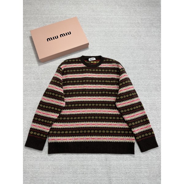 MIUMIU 페어아일 스웨터, ZP13200 독일 352기 밑단 플라이라인 얼굴 자카르 면 양모사로 퀄리티 zp 견줄 만하고 무게는 거의 같음