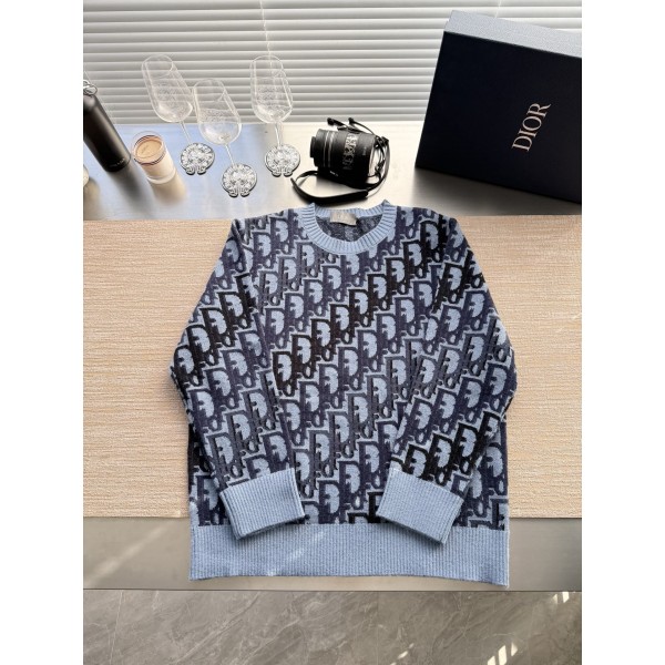 Dior 2025FW 전폭 자카드 라운드 스웨터 ZP 15,000 구매 분해 제작 100% 코튼 울 소재 맞춤 제작, 전폭 컬러 오블리크 자카드 장식 원단과 어우러지도록 자카드 제작 시그니처 골지 소매 밑단 맞춤, 초밀도로 부분 짜임 진정한 1:1 copy