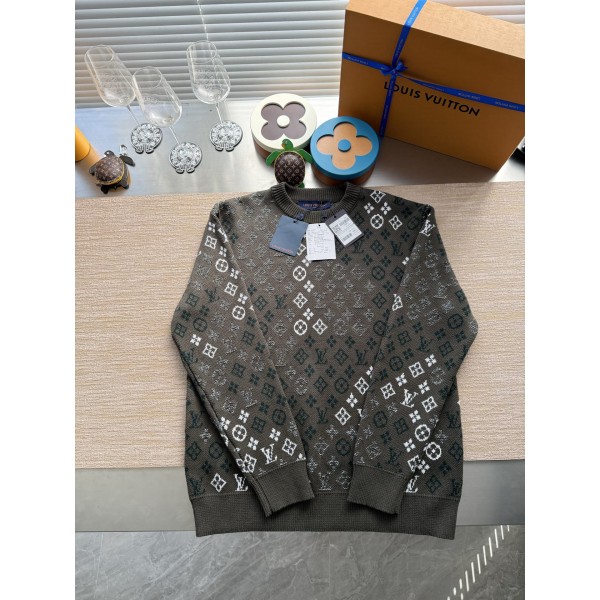 Louis Vuitton 25FW monogram 만판 자카드 라운드 니트 ZP 15100 구매 분해 제작 정직 캐시미어 울 혼방, 이태리산 전폭 모노그램 자카드 디자인, 자카드 원단과의 일체화 정직 시그니처 골지넥 소매 밑단, 초밀도로 부분 짜임 진정한 1:1 copy
