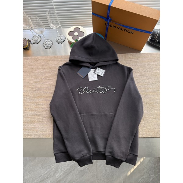 Louis Vuitton 25FW 비딩자수 후드티 ZP 13200 구매 분해 제작 맞춤 순면 원단, 이태리제, 후드 디자인 앞뒷판 장식 비딩자수, 골지 소매 밑단 고정 초밀도로 부분 짜임, 진정한 1:1 복원