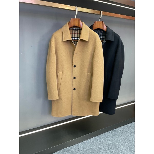 버버리 2025 추동 남성 하프기장 캐시미어 리버시블 코트 이 코트는 양면 울 트윌 원단으로 정교하게 제작되었으며 100% 순모 겉감은 부드러운 터치감과 힘찬 핏을 겸비하여 가을과 겨울의 변화무쌍한 기후에 적합함과 동시에 고품질 원단에 대한 브랜드의 집요한 추구를 이어감 원단 재단부터 세부 사항 봉합까지 유럽의 장인 정신의 엄격함과 정교함을 모두 보여줌 단추 여밈이 심플하고 깔끔하며 테두리를 두른 사이드 포켓은 실용성과 미학을 겸비하고 있음 뒷트임 디자인은 역동적이고 생동감 있는 느낌을 더하며 안감 없는 구조는 단품에 가벼운 착용 경험을 제공하여 다양한 상황에서 레이어드할 수 있는 요구에 적합함 소매 안감에 비스코스 100% 섬유를 사용하였으며 질감의 뿔 단추로 디테일을 살린 세련미