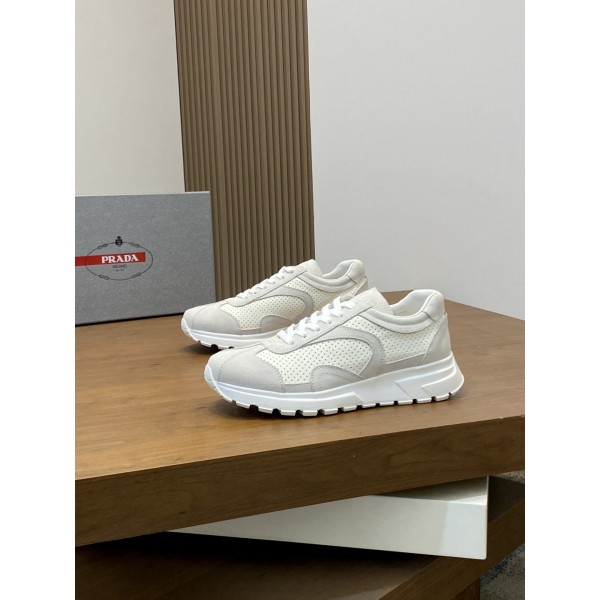 프라다 신상 남성 패치워크 스니커즈 뛰어난 스티치 기술로 독특한 기하학적 무늬를 그려내며 현대적인 스타일 라인과 디테일로 클래식한 운동 스타일을 새롭게 연출함 초홈페이지 소재의 아웃솔로 안감 바닥이 소가죽으로 되어 있어 통기성이 뛰어나며 프라다 밀라노 로고와 로고 프린팅으로 끈을 포인트 2.5cm 투톤 고무창으로 편안한 착화감을 선사함