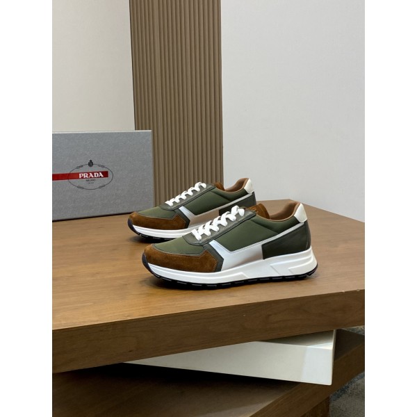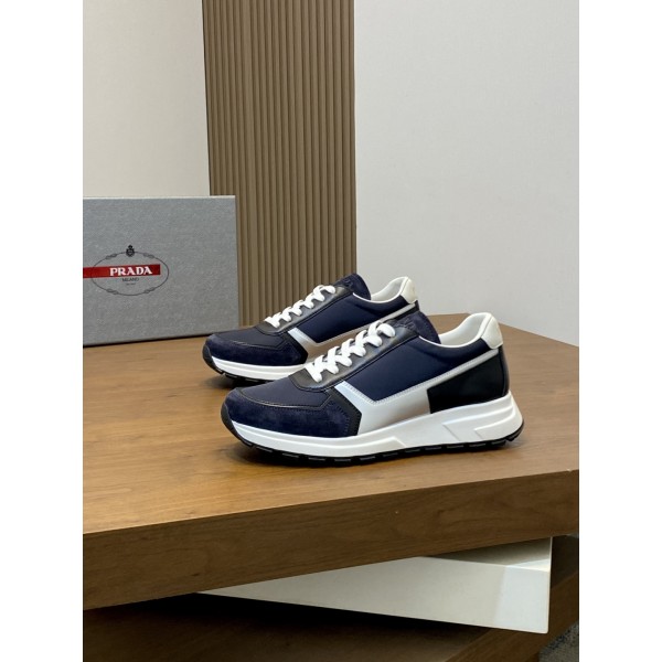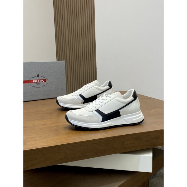 프라다 신상 남성 패치워크 스니커즈 뛰어난 스티치 기술로 독특한 기하학적 무늬를 그려내며 현대적인 스타일 라인과 디테일로 클래식한 운동 스타일을 새롭게 연출함 초홈페이지 소재의 아웃솔로 안감 바닥이 소가죽으로 되어 있어 통기성이 뛰어나며 프라다 밀라노 로고와 로고 프린팅으로 끈을 포인트로 2.5cm 투톤 고무창으로 편안한 착화감을 선사함