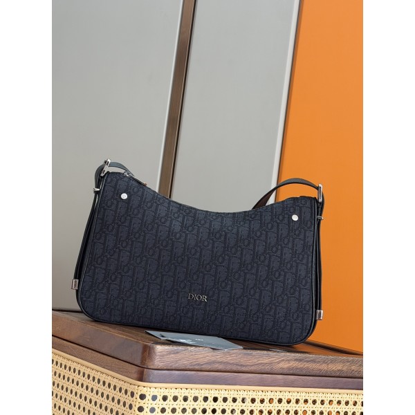 Dior Slider 지퍼 호보백, 2025년 겨울 남성복 시리즈 신상품 본체: 면, 테크니컬 원단, 소가죽 안감: 테크놀로지 원단 면 소가죽 지퍼 메인 파티션, 내부 지퍼 포켓 조절 가능한 가죽 스트랩과 Dior Slider 메탈 액세서리 앞면 박음질 실과 장식 스터드 정면에 메탈 코팅 동합금 Dior 로고로 장식 내부에는 디올 엠보 로고가 장식 사이즈: 34 x 23 x 8.5cm