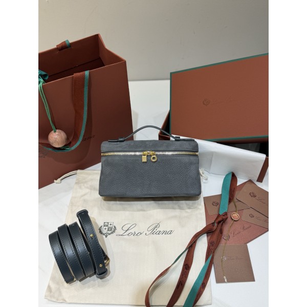 로로피아나 엑스트라 포켓 L19 벨벳 그레이 블루 골드 버튼 복잡한 디자인이 필요 없는 스타일 간결하고 부드러운 실루엣이 우아하고 보기 좋으며 마치 정교한 화장 상자처럼 외모와 기능성을 완벽하게 겸비 가죽은 섬세하고 감촉은 버터처럼 부드럽고 작은 가방은 대용량이며 손과 어깨끈뿐만 아니라 크로스도 가능 미니멀리즘에 대한 독특한 매력 사이즈: 가로 19×세로 7×높이 12cm