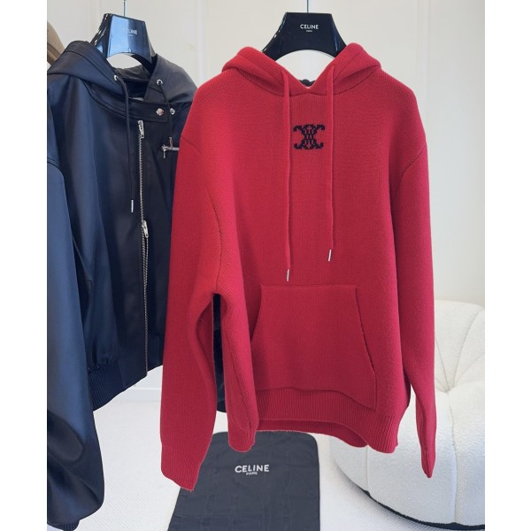 셀린느 2025 추동 신상 레드 니트 후드니트 캐시미어 울 혼방 소재로 양면 니트 블랙 컬러에 레드 컬러 도톰하고 부드러우며 따뜻하며 고포화 레드 + 블랙 자수 로고 심플하고 고급스러우며 인식도 만점 후드 + 스트링 디자인으로 캐주얼한 느낌과 루즈한 핏으로 다양한 몸매를 포용하여 데일리로 부담없이 소화가능