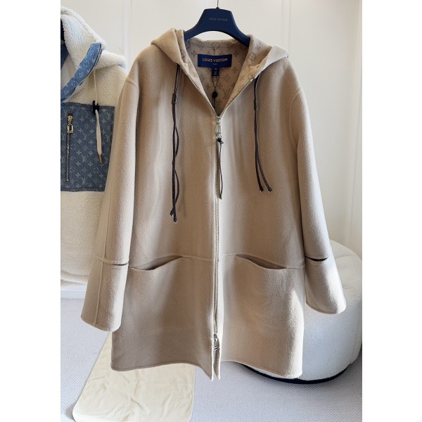 LV 2025 가을-겨울 후드 코트 오리지널 맞춤형 양면 양털로 부드럽고 따뜻하며 카키색 심플하고 고급스러우며 클래식한 모노그램의 노화로 브랜드 감각이 가득함 후드 + 스트링 디자인으로 실용적이고 스타일리쉬하며 루즈한 컷팅이 멋스러우며 통근이나 공식석상에서도 부담없이 소화가능 지퍼 디테일이 세련되고 퀄리티가 높아 가을 겨울 옷장에 꼭 필요한 아이템